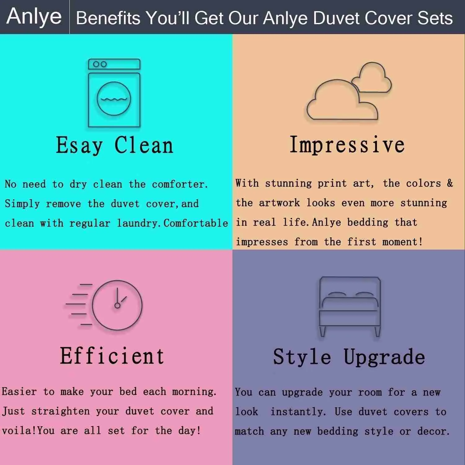 HIGH-QUALITY MATERIAL: The duvet cover and pillowcase are made of high-quality material and look as good as they feel. Environmentally friendly, thin, comfortable, cotton-like in feel, brightly colored, and never fades